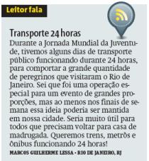 Transporte 24 horas - Leitor fala - Metro
